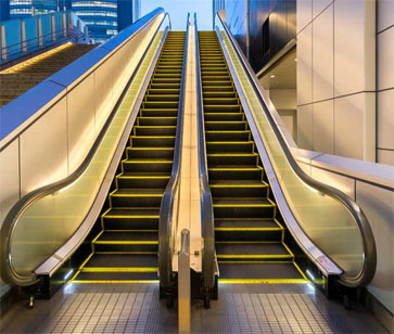 mechanical devices used for transporting people vertically between different levels of buildings. Typically, they take the form of a moving staircase, consisting of a 'chain' of single-piece ...